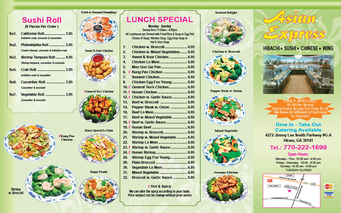 Welcome to Asian Express - Hiram, a delightful culinary gem located at 4272 Jimmy Lee Smith Pkwy, Hiram, GA. This eatery offers a vibrant menu loaded with mouthwatering options, perfect for any budget.